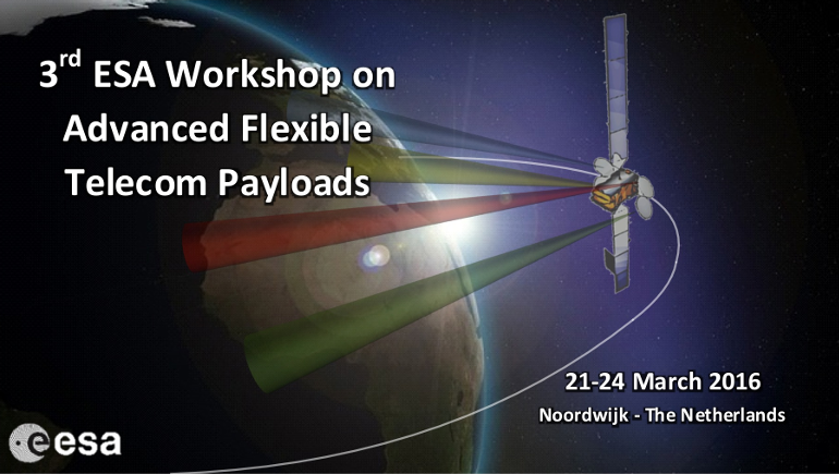 It is our pleasure to welcome you to the 3rd ESA Workshop on Advanced Flexible Telecom Payloads jointly organized by the European Space Agency’s Directorates of Technical and Quality Management (TEC) and Telecommunications and Integrated Applications (TIA), taking place 21-24 March 2016 at ESA/ESTEC, Noordwijk, The Netherlands.