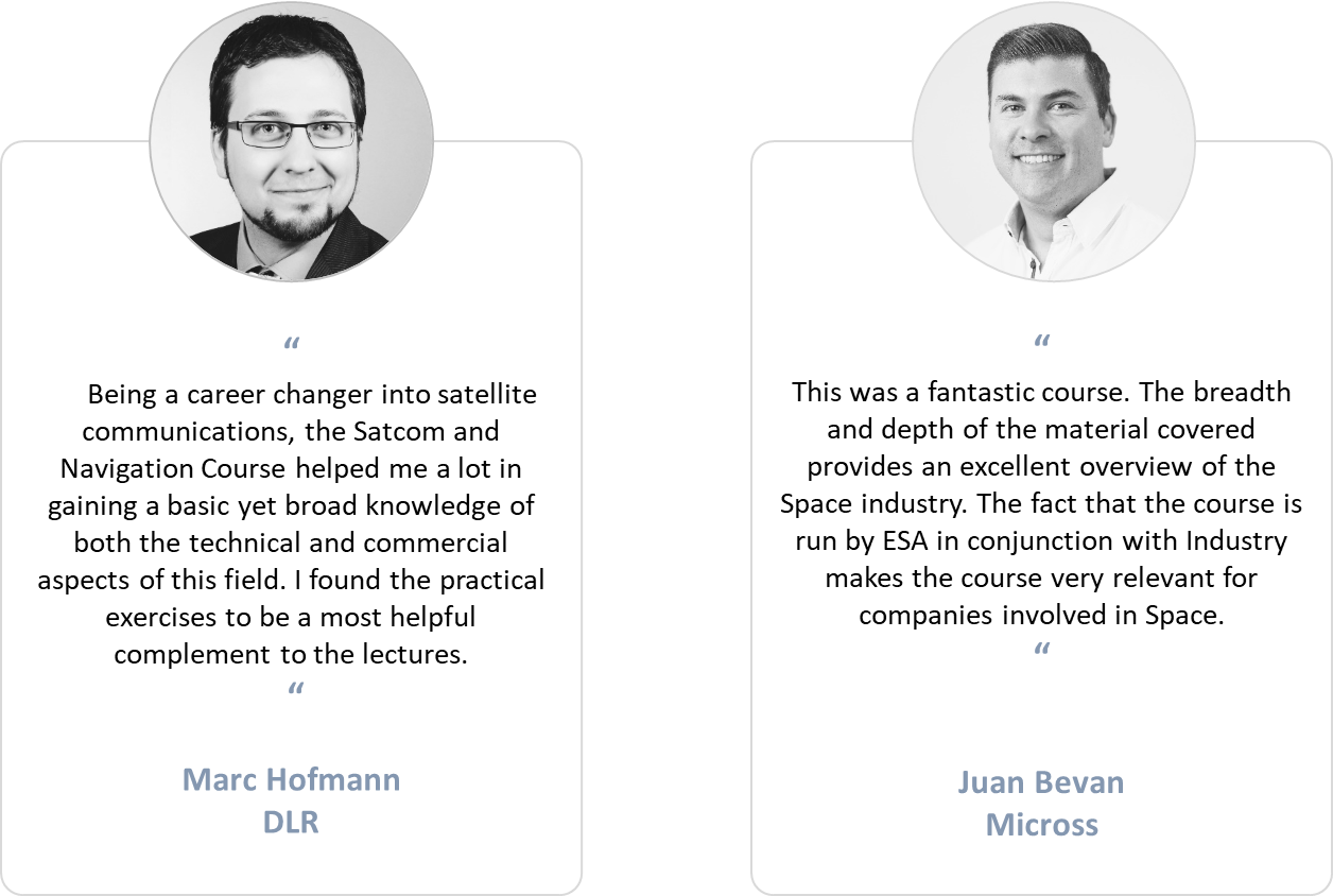 The target audience are graduates and young professionals with an engineering and/or financial background as well as senior professionals wishing to expand their background knowledge of Satcom systems and services.