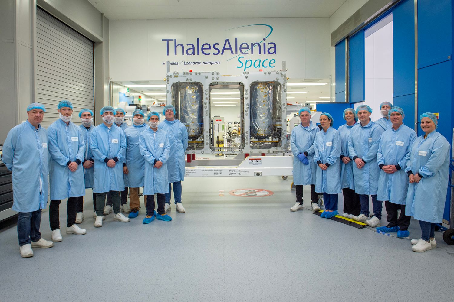 The first Space INSPIRE (INstant SPace In-orbit REconfiguration) propulsion system module, recently completed at Thales Alenia Space’s Belfast facility, has now arrived in Cannes for integration into the ASTRA 1Q satellite, the first of the Space INSPIRE product line which is scheduled for launch in 2026. The product line is supported by ESA’s Advanced Research in Telecommunications Systems (ARTES) programmes (Competitiveness & Growth and Novacom II), as well as French Space Agency (CNES – Centre National d´Etudes Spatiales) and UK Space Agency (UKSA).