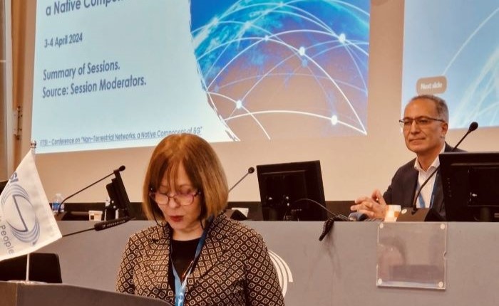 ESA’s Maria Guta, Senior 5G/6G Satellite Solutions Architect, presents to the Conference participants. Image credit: ESA