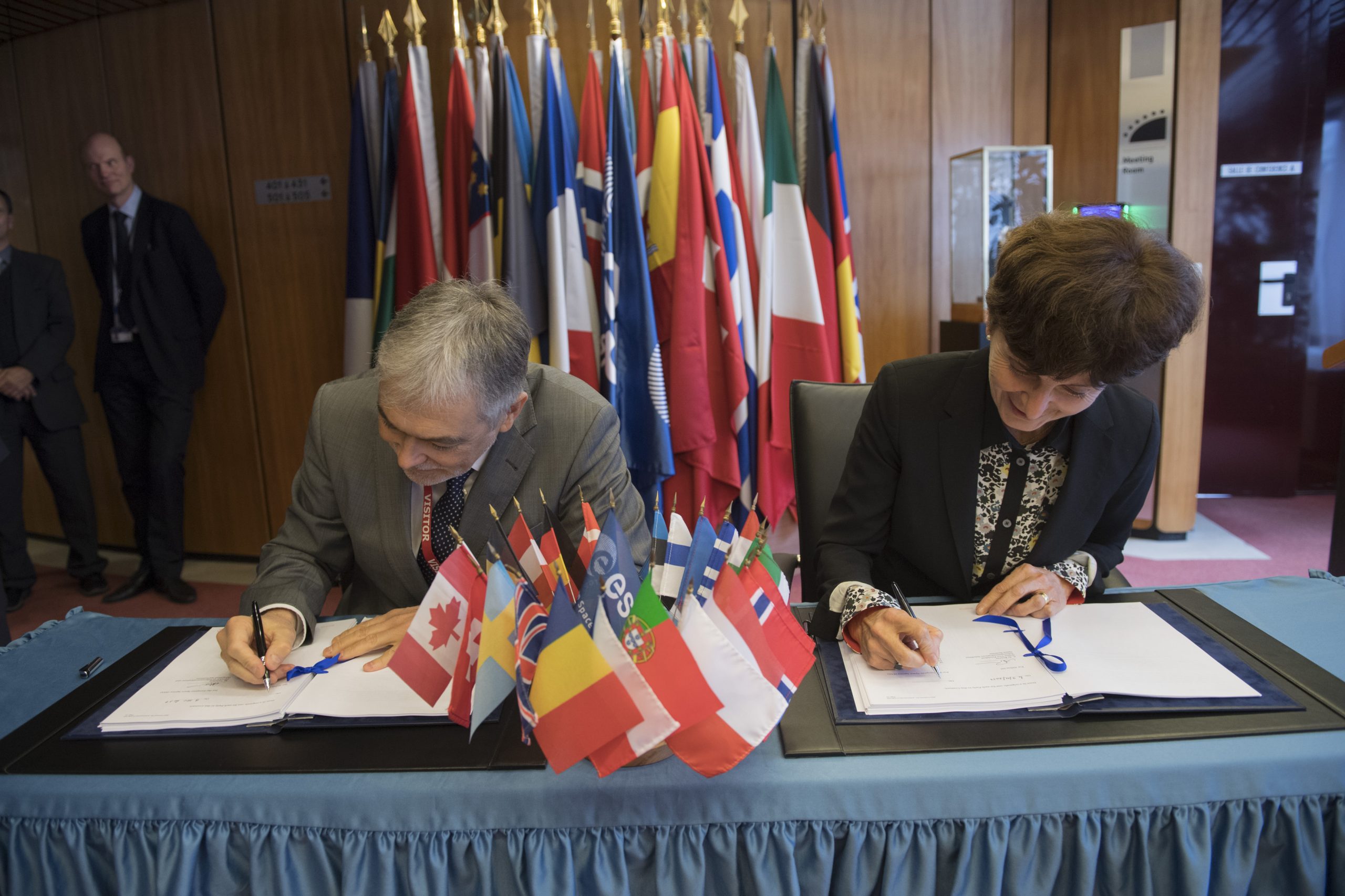 Today, ESA initiated the third SMP Project in the Pioneer Partner programme, with the signature of the IODA contract by ESA and Airbus Defence and Space (FR), leading a team of Canadian and Europen companies. The contract was signed at the headquarters of ESA by Magali Vaissiere, ESA Director of Telecommunications and Integrated Applications and Arnaud de Rosnay, ADS Executive Vice President of Telecommunications Satellites.