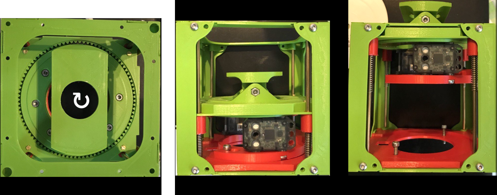The antenna and pointing system are located inside a CubeSat unit. In order to be able to freely operate the antenna pointing, a deployment system is necessary. For this purpose, we developed a deployment system driven by 4 compression springs.