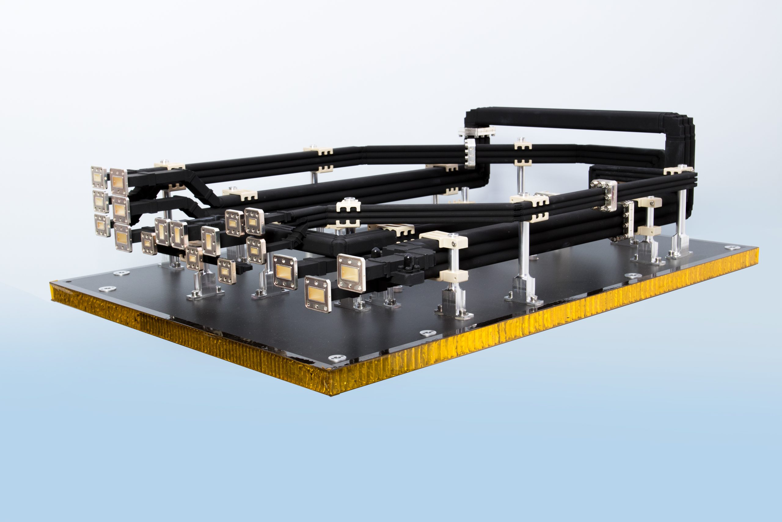 This project is focusing on the development of novel waveguide harness solutions that provide mass savings in the order of 20% or more without penalty of mechanical and RF performance compared with existing implementations. A detailed review of present harness designs is performed to identify the individual mass contributions of the related hardware, as e.g. waveguide runs, interconnections and assembly material. Subsequently, techniques such as wall thickness reduction, material selection, fixation methods, alternative waveguide implementations and in particular bundling of waveguides runs are evaluated and compared with present harness designs to ascertain potential mass savings.