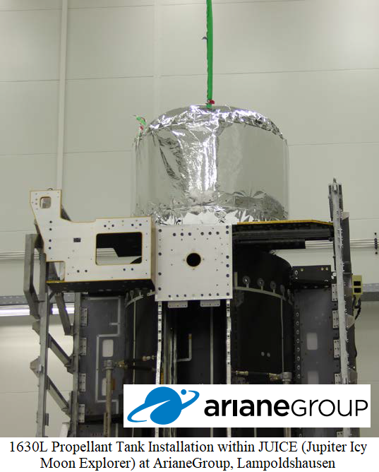 The prime contractor consider the family of tanks to be fully qualified for the Eurostar NEO and JUICE environments, and two 1630L flight tanks are installed on the JUICE spacecraft.