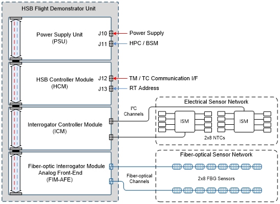 The objective of the HSB development is to provide a new system which allows the acquisition of bus-based sensor networks on-board spacecraft. Transducers are used to convert measurands (e.g. temperatures) locally at the respective measurement points. Information of the measurands are transferred via sensor bus networks to the HSB interrogation unit.
