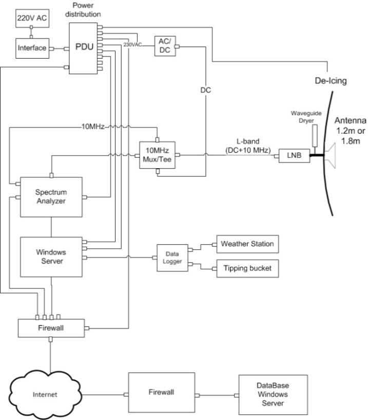 The propagation terminal consists of beacon measurement and meteorological stations. It collect and stores data locally, then at regular intervals upload data to the central sever.