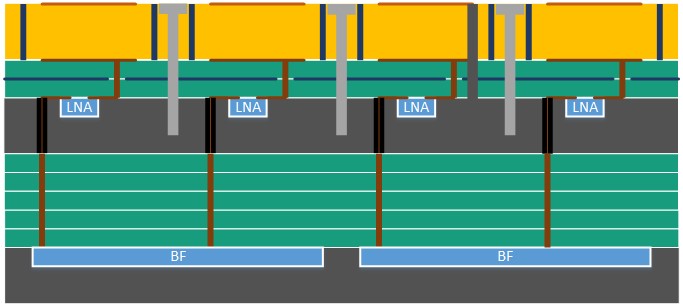 Ka-Band frequencies are used terrestrially, e.g. in upcoming 5G networks; this motivated various semiconductor manufacturers to provide “beam former” chips in this frequency range. In turn, this allows to implement highly integrated, compact, and power efficient phased array antennas. However, there are only very few chip solutions that match the specific frequency plan on a satellite, and thus finding the right combination of components and matching them with a wide-angle antenna element is challenging.
