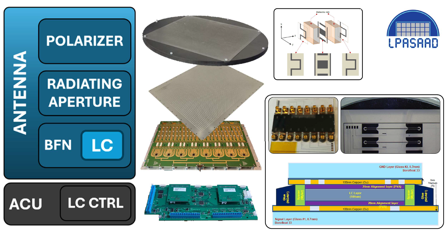 - An active phased array antenna optionally equipped with liquid crystal phase shifters have been prototyped, tested and fully integrated into the transmitting antenna subassembly of a technological demonstrator.