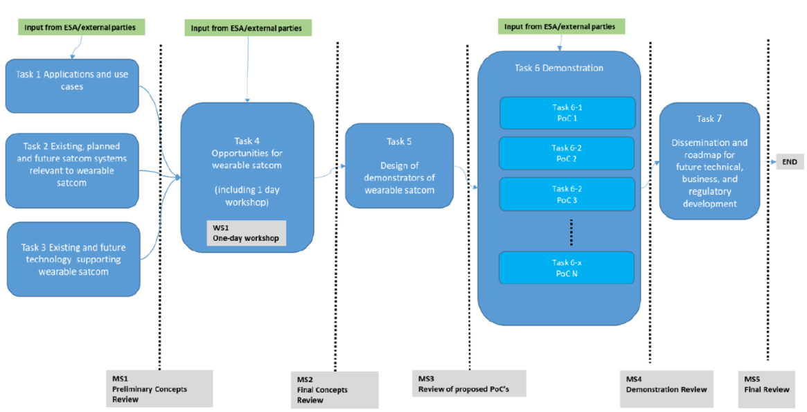 Demonstrate several short-term Proof-of-Concepts (PoC’s) that shall stimulate the discussions around wearable satcom and – more in general – shall trigger a notion that satcom could be economically an option for the wearable market.