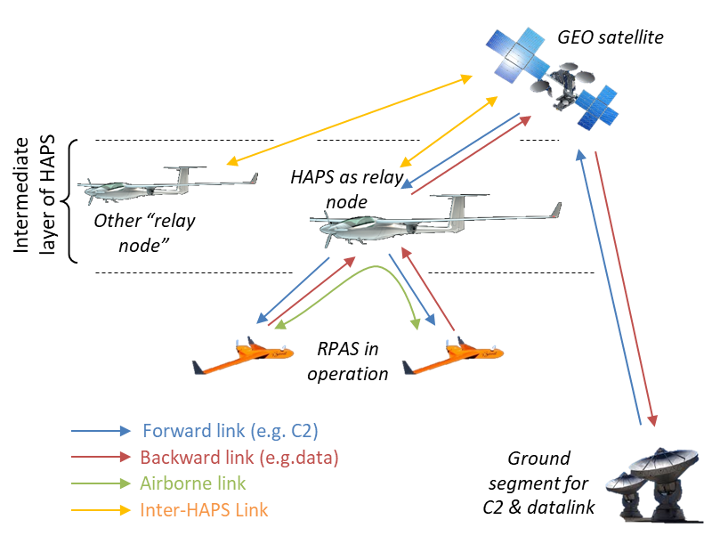 The project’s main objective is to propose a preliminary design of a HAPS (High-Altitude Platform System) layer in a SATCOM-based communication network that would foster the use of small RPAS in new domains.