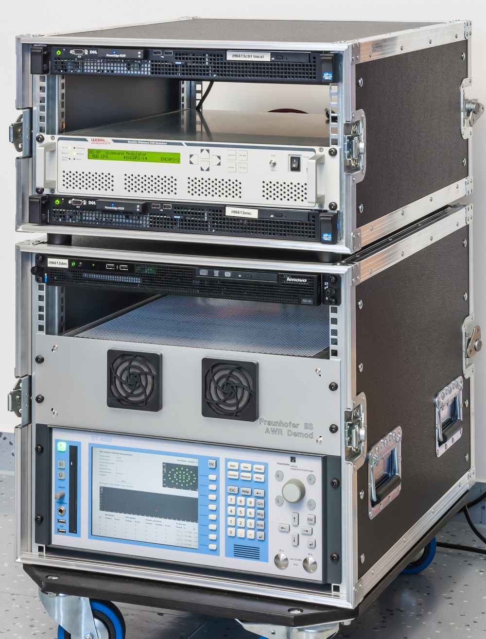The second picture shows the developed testbed devices mounted in a TX-rack-box (top) and a RX-rack-box (bottom).